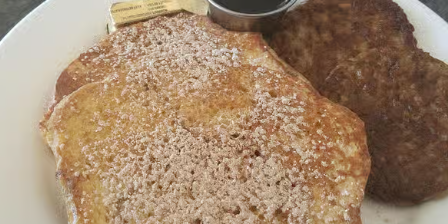 Two Pieces Thick Cut Cinnamon Bread, With A Choice Of Breakfast Meat.